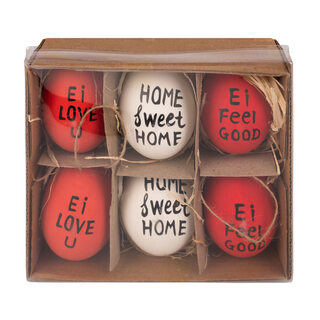 Ostereier Naturecht 'Statement' rot/weiß/rot 6 cm, 6 Stk.